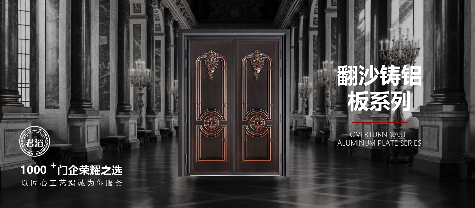 浙江君滔五金——中國門都極負盛譽的門配制造供應商,旗下專業生產:銅門門花、壓花板(真銅/不銹鋼銅),不銹鋼鍍銅板(平板/卷帶),真空/翻砂鑄鋁板,卡門壓花板(銅/鋁/鋅鐵合金/不銹鋼/不銹鋼鍍銅),精雕板(銅/鋁/鐵),精雕銅/鋁拉手,5D蝕刻板,不銹鋼/鋁板/精雕板(鍍銅,鍍金)電鍍加工,鑄鋁板、卡門板等的油漆加工,溶銅加工(不銹鋼/鋁)等。公司擁有數十個外觀專利,產品廣泛應用于門業廠家、裝修行業,建材企業,銷售范圍遍及全國各地?!熬先恕北小爱a品質量第一,企業信譽至上”的宗旨,力求給客戶提供最優良的產品,最優質的服務,竭誠歡迎新老客戶真誠合作。您的滿意是我們“君滔人”最大的追求。歡迎新老客戶光臨指導,共展宏圖。